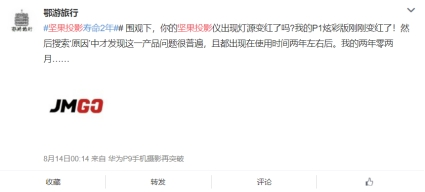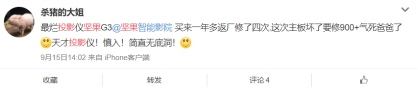 不仅红屏维修难,还虚标蒙骗消费者,坚果这些套路可以在短时间欺骗到消费者,但毕竟不是长久之计。希望坚果可以将用户放在第一位,给消费者带来真正的好产品。