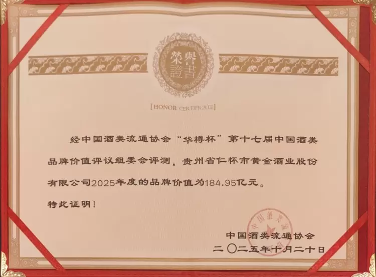 斩获华樽杯认可!黄金酱酒以 184.95 亿品牌价值刷新历史
