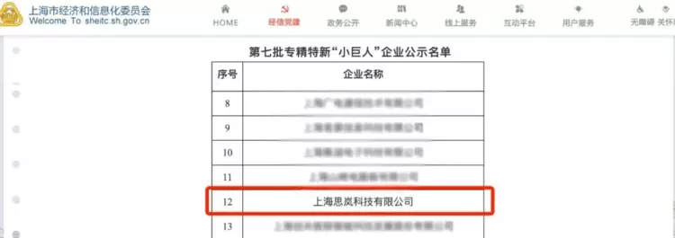 2025年10月20日,上海市经济和信息化委员会正式公示第七批专精特新"小巨人"企业名单。