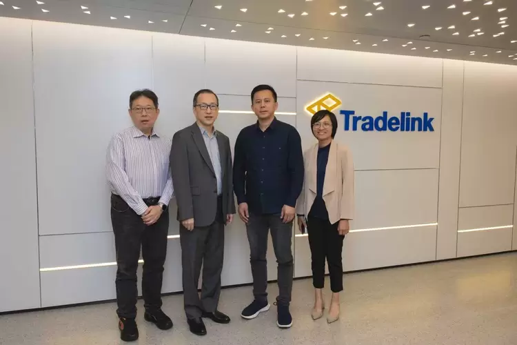 (从左到右:贸易通执行董事兼营运总监郑俊聪先生、贸易通执行董事兼行政总裁袁民忠先生S.B.S.、法大大创始人兼CEO黄翔先生、法大大高级副总裁兼COO林希婧女士)