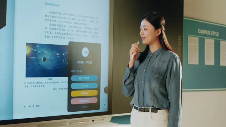 这意味着,智慧黑板不再是以往低智能化、弱适应性的辅助性显示工具,而是融合人工智能、数据分析和多模态交互的智慧终端,更是教师的教学助手,学生的学习伙伴——真正意义上的“AI同窗”。