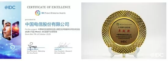 10月17日,在IDC(国际数据公司)“2025中国CIO峰会暨数字化转型年度盛典”上,中国电信“无线网优任务大模型及多智能体协同创新实践”项目,凭借前瞻技术架构与规模化应用成果,在“AI就绪平台领军者”赛道中荣获卓越奖,该奖项为该赛道最高荣誉,仅设一席,充分展现中国电信在人工智能核心能力上达到国际先进水平。