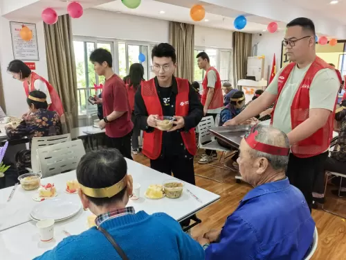 除了知识讲解,联通工作人员更是穿梭于人群中,为老人们分发生日蛋糕和长寿面,与大家一同唱响生日歌,共同分享生日的喜悦。当活动接近尾声,工作人员主动留下收拾现场,确保场地整洁如初,用点滴行动传递关怀与尊重。