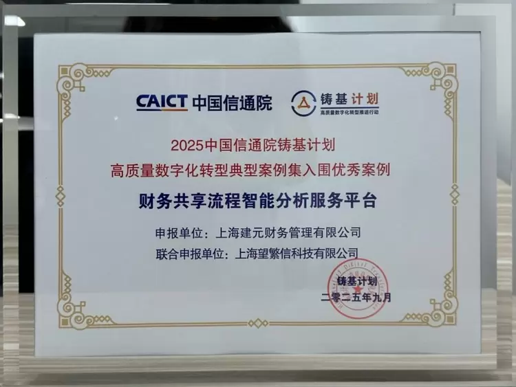 其中,“财务共享流程智能分析服务平台”案例由望繁信科技携手上海建元财务管理有限公司(简称“建元财务”)联合申报,成功入选“铸基计划”典型案例集,充分展示了流程智能技术在财务共享领域的创新应用与行业价值。