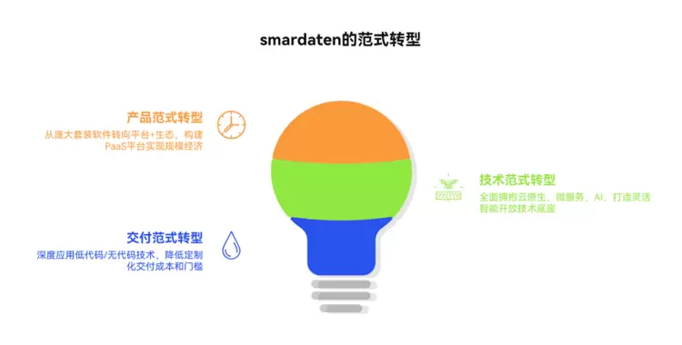 3.交付范式转型:深度应用企业级无代码技术,极大降低定制化交付的成本和门槛,将人力从代码堆里解放出来,聚焦于业务创新。