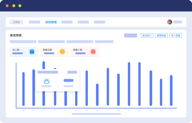 · AI驱动的弹性排班:系统可整合客流数据、销售预测、天气情况等多维度信息,自动生成排班方案,避免“闲时冗余、忙时短缺”。