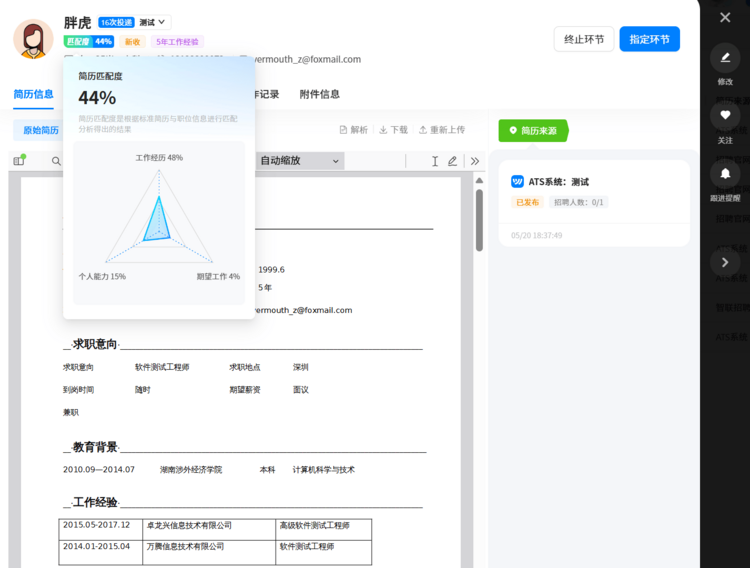 · 智能招聘协同:梧桐People(智能员工管理系统)与梧桐ATS(智能招聘系统)无缝对接,自动筛选简历、生成人岗匹配评分。某零售企业应用后,无效简历筛选效率提升92%,HR日均处理量从200份增至2000份。