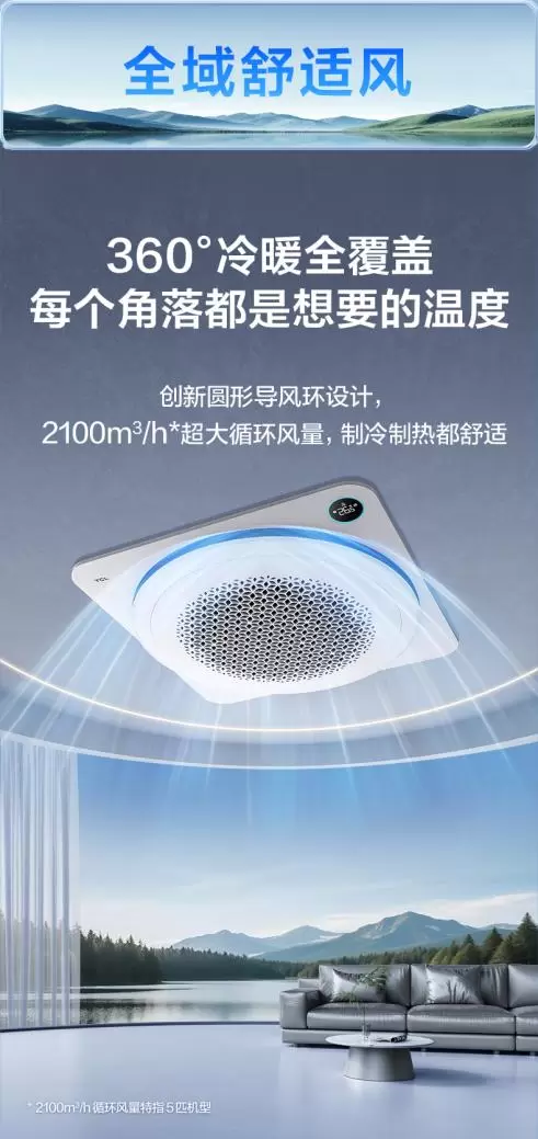 全域舒适风,TCL小蓝翼天花机实现360°冷暖全覆盖