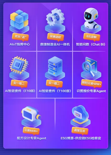 每年年末,鼎捷均将以智造节为契机,开启专属于企业家朋友的节日盛会。鼎捷充分发挥自身行业资源、专家资源和市场资源,为企业高管搭建一个高质量的学习交流平台,携手TOP级高校研究院、地区协会等,打造高端圈层IP活动,提升战略视野,拓展优质人脉。在本届活动中,更有AI创想π趣味直播,邀请砍价团空降,在线狂撒福利!此外行业礼包(最佳案例实践、高质量干货PPT、制造业培训课程、AI大礼包等,一站式赋能,助你进阶不停!