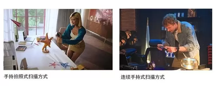 其中,连续扫描工作模式下,可以每秒最高15fps的扫描速度进行连续扫描;手持拍照式扫描,则支持通过按下快捷键按钮的方式来实现单帧扫描捕捉功能,充分满足在狭小或不易操作的环境以及对物体局部的精细捕捉。桌面式扫描工作模式,则是在转盘与三脚架的辅助下,让3D内容创作者充分解放双手,扫描更轻松,扫描结果更稳定。