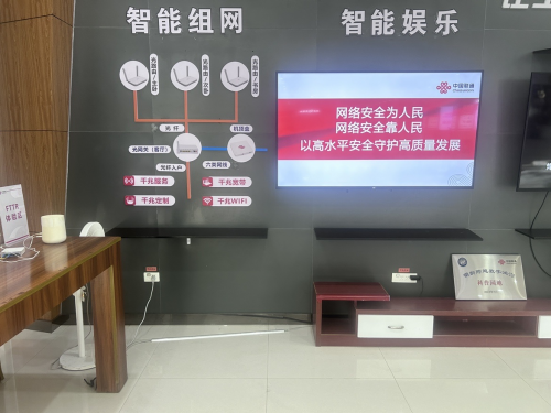 厅店宣传,营造网络安全知识学习氛围:在营业厅,线下全市各营业厅设置网络安全专区,摆放丰富多样的宣传资料,涵盖网络安全法律法规解读、电信诈骗防范技巧、个人信息保护指南等内容。营业厅LED屏滚动播放“网络安全为人民,网络安全靠人民—以高水平安全守护高质量发展”宣传标语,厅内电视循环播放网络安全及反诈视频,工作人员主动向前来办理业务的用户发放安全小知识手册,讲解网络安全知识,包括如何防范电信网络诈骗、识别钓鱼链接、保护个人信息安全等实用知识,以直观生动的方式向用户展示网络安全的重要性。