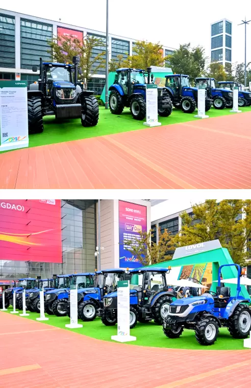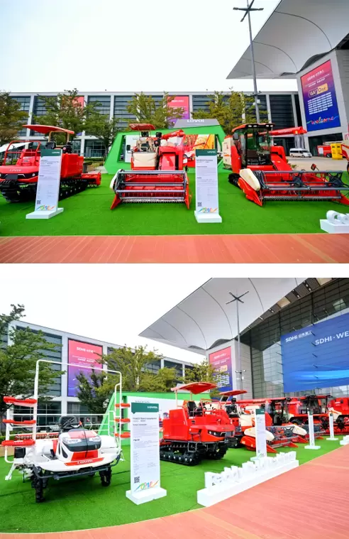 在产品展示区,从高大威猛的雷沃P8340 CVT拖拉机到小巧灵活的雷沃F4000果园机,由15台拖拉机、4台收获机、3台特种机械及3台农机具组成的强大产品阵容,构筑起覆盖覆盖“耕、种、管、收”成套农业装备解决方案。