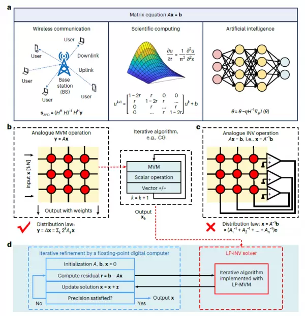 在数学的世界里,解方程组就像解开一个复杂的谜题。当你面对一堆相互关联的未知数时,传统计算机需要一步步地计算,就像一个人在黑暗中摸索着寻找出路。然而,北京大学的研究团队最近在《Nature Electronics》期刊上发表了一项突破性研究,他们开发出一种基于电阻式随机存取存储器(RRAM)的模拟计算系统,能够以前所未有的精度和速度解决矩阵方程问题。