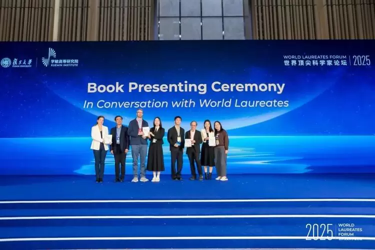 闭幕仪式上,人民日报出版社社长丁丁,复旦大学新闻学院教师伍静及研究生许子睿、胡佳妮,向顶尖科学家及青年科学家代表赠送了《走近世界顶尖科学家》一书。