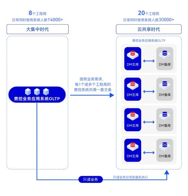 然而,在信息化建设初期,中国铁建下属20多个工程局,在原有架构下,每个工程局都有各自独立的财务系统,且各自使用国外数据库集群,成本居高不下。为进一步提升集团财务运营效率,降低经营和财务风险,中国铁建携手达梦数据,对原财务系统进行改造,由原来的分散式整合为集中式管理。