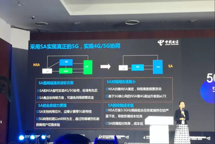 中国电信还率先发布5G技术白皮书,明确5G技术路线,明确了中国电信未来5G目标网络架构、关键技术选择、网络演进策略;采用SA方案确保用户体验和个性化服务,实现真正的5G;推动5G产业成熟,引领了SA产业的发展。