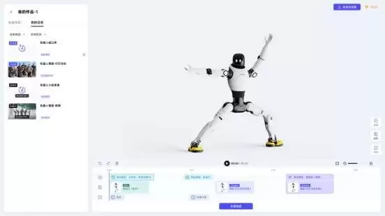 为了满足商业表演、导购等场景下对长序列、复杂任务的需求,“灵创”平台提供了一个类似视频剪辑软件的时间轴编排工具。用户可以将不同的动作、语音和表情片段进行自由组合与剪辑,像导演一样精确控制每一帧的节奏,从而创作出连贯的“机器人故事片”。