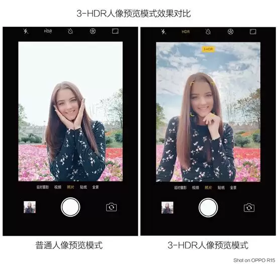 OPPO R15星空紫特别版首创3-HDR实时分级曝光技术,在RGBG一个像素中,各个子像素间采用不同曝光,实现硬件实时HDR,加上更优的软件成像优化,从看到拍,始终如一。在以往逆光环境下,人们往往只能记录前景或背景一个方面的画面,OPPO R15星空紫特别版则让前景和背景都一样清晰。
