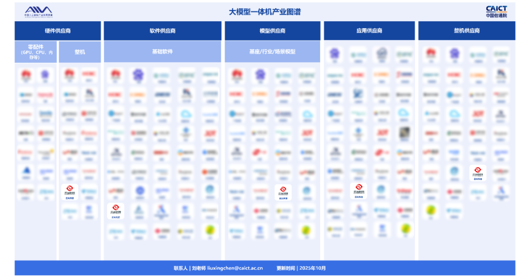 近日,由中国人工智能产业发展联盟与中国信息通信研究院联合编制的 “大模型一体机产业图谱” 正式发布,该图谱系统收录国内大模型一体机产业链上下游 70 余家代表性企业,全景式呈现产业生态体系。