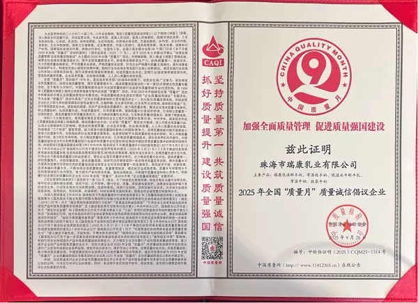 作为广东省高新技术企业,瑞康乳业聚焦创新驱动,与多所高校及科研机构建立深度合作,持续推动乳制品行业的技术进步和质量升级。