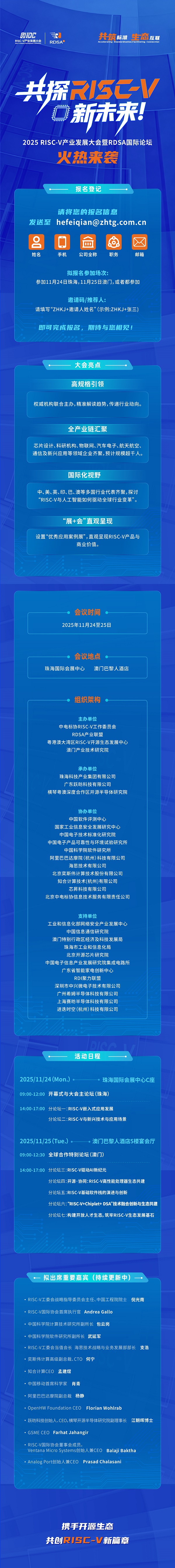 本届大会预计吸引全球超1000名行业代表齐聚,覆盖芯片设计、物联网、汽车电子、航空航天、通信等关键领域——不止是技术交流,更是推动开源芯片从“单点突破”走向“规模化生态落地”的核心对接平台。
