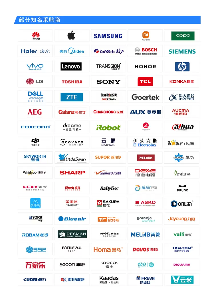 5.部分VIP观众和采购商:海尔、美的、格力、华为、苹果、小米、OPPO、海信、TCL、康佳、联想、荣耀、VIVO、大疆、长虹、创维、奥克斯、博世、西门子、松下电器、东芝、三星、LG、荣事达、格兰仕、美菱、澳柯玛、小天鹅、美大、方太、老板、华帝、帅康、樱花厨卫、阿里斯顿、林内、苏泊尔、九阳、万和、万家乐、AO史密斯、云米、莱克、爱仕达、艾美特、伊莱克斯、伊莱特、小熊电器、安吉尔、净美仕、阿诗丹顿、布鲁雅尔、亚都、戴森、绿岛风、科沃斯、云鲸、石头科技、追觅、一点、晓舞、艾罗伯特等;
