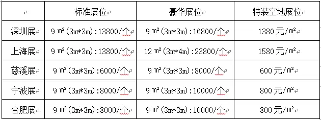 1、展览收费:(双开口标准展位加收10%)