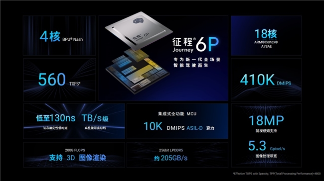 算法突破对芯片算力提出了更高要求,同时芯片算力也是实现"以快打慢"的基石。徐健重点介绍了地平线征程6系列计算方案,特别是专为全场景智能驾驶而生的征程6P。“征程6P具备560TOPS的BPU算力和410K DMIPS的CPU算力,支持256bit DDR5存储,为70亿参数以上的视觉语言大模型上车提供了可能。”他透露,目前征程6系列已获得20多个品牌定点,赋能100多款车型,成为行业广泛采用的平台化技术底座。