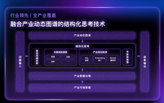 具体而言,万联摩尔基于可信数据底座,通过分析产业生态中纵向的上下游关系和横向的行业竞争替代关系,并叠加产业互联网生态数据的动态更新机制,形成了产业动态图谱。而其结构化思考能力在于可以把产业复杂问题拆解为一系列子问题分别求解,基于行业底层逻辑推导最终结果,从而实现专家级分析。