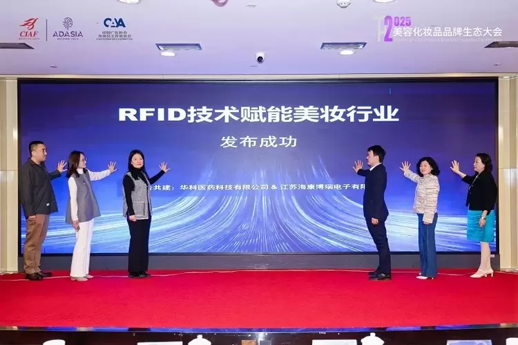 在会议现场,深耕行业的数字化专家—华科医药携手RFID物联技术的核心力量——江苏海康博瑞。共同启动了“RFID技术赋能美妆行业”合作项目