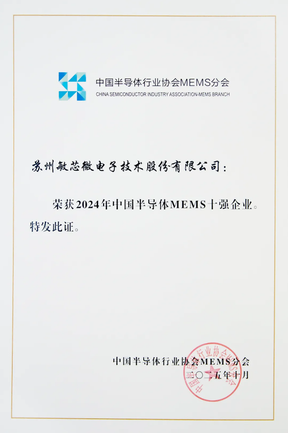会上正式揭晓了2024年度“中国MEMS十强企业”榜单,名单由中国半导体行业协会根据行业季度统计报表及各地方协会统计数据评选出,敏芯股份凭借全产业链技术优势与市场统治力多年入选榜单。