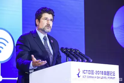 英特尔销售市场部副总裁及网络和通讯运营商销售事业部的总经理谢沃纳(Werner Schaefer)在ICT领袖论坛发言