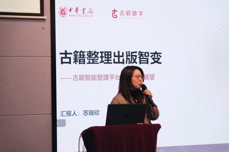 苏瑞欣(古联公司古籍实验室)则聚焦于《古籍整理出版智变》,分享了如何利用AI技术搭建智能平台,实现古籍整理的全流程智能化解决方案。