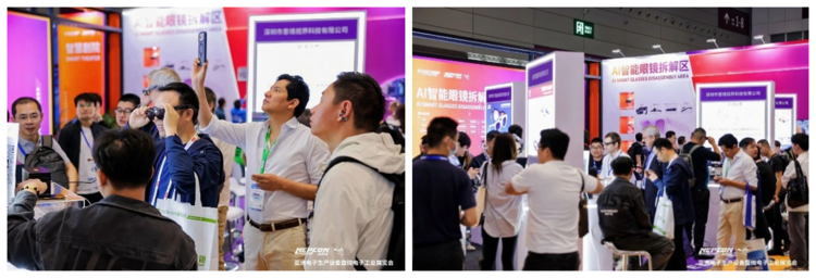 AI、机器人作为今年科技领域的热门领域,NEPCON ASIA 2025亚洲电子展打造AI 智能眼镜拆解区及具身智能机器人及核心零部件拆解区,智元、芯导、东芯、灵途传感、宏芯宇、南天实业、图灵智新、京微齐力、遨格芯、耕芯、代客思机器人、青璃智能、古月居、本末、威迈尔、云帆智控等机器人本体惊艳亮相,以及影目、谷东、唯酷、大朋vr等AI智能眼镜沉浸式互动,各式拆解展示吸引广大观众为围观驻足,深度了解AI、机器人领域背后的电子奥妙。