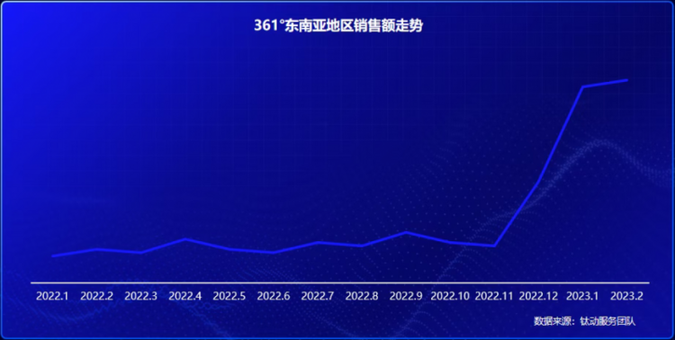 钛动科技的这一系列举措成效显著,2023年2月,361°在东南亚地区的销售单价同比提升34%,而2023年1月的整体销量更是达到去年同期的9倍,实现了品牌价值与销售业绩的双重提升。