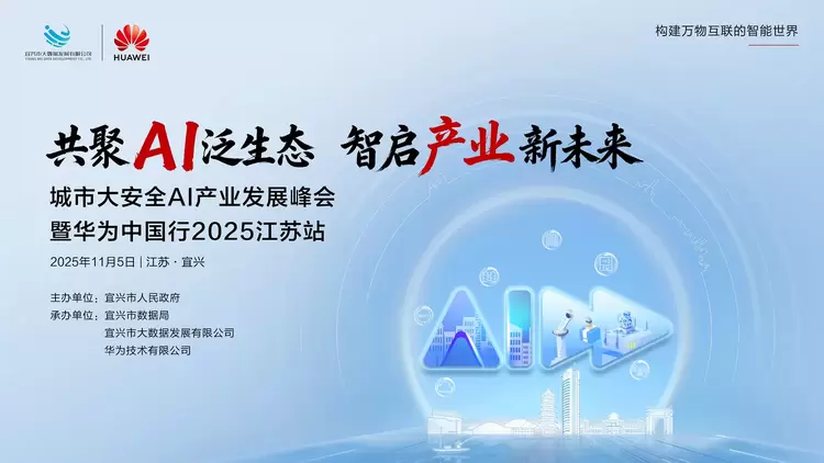 为推动更多城市共享AI赋能城市安全的经验,11月5日,华为与宜兴将组织“共聚AI泛生态 智启产业新未来——城市大安全AI产业发展峰会暨华为中国行2025·江苏站”活动。峰会现场将发布城市安全Agent双图谱等重磅成果,展示“天机镜”城市安全大模型实践案例。面向未来,“天机镜”城市安全大模型也将持续进化,赋能更多城市绘就属于自己的“智能基因”,书写AI CITY新篇章。