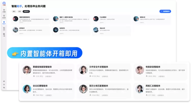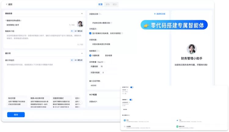 内置智能体开箱即用:360AI企业知识库产品内置6大知识智能体、5个深度研究智能体以及21个MCP服务,让企业跳过“从0到1开发AI能力”的复杂过程,直接迈入“从1到100快速复制场景价值”的阶段,加速AI在各行业的规模化应用。智能体具备丰富的互动形式,图文、网页、表单、图表,用户可以用各种不同形式与智能体互动。