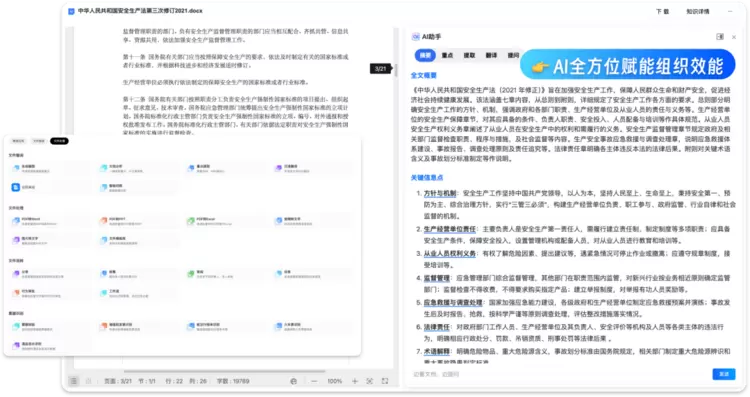AI全方位赋能组织效能:会议记录、流程审批、数据整理、跨部门沟通……现代职场在效率工具环绕下,却常陷入新的“数字泥沼”。360AI企业知识库集文件流转、文件处理、工作流、会议纪要于一体打造企业办公工具台,同时通过“AI助手”为企业员工提供安全的对话式工作助手,提高创造力并简化工作。