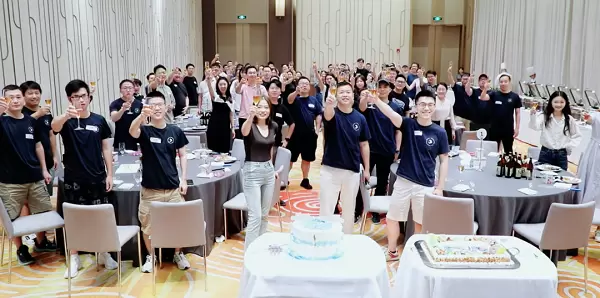 讯兔科技3周年庆典合影,中间为李罗丹、右为崔予淳、左为喻春燕