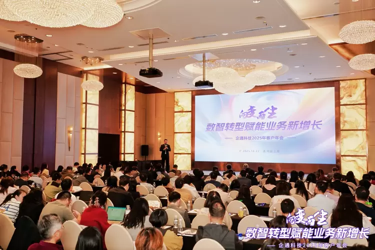 2025 年 10 月 22 日,以 “向变而生・数智转型赋能业务新增长” 为主题的企通科技客户年会在上海明捷万丽酒店盛大召开。来自各行业的 200 余位企业经营者齐聚一堂,围绕“应对变化、突破内卷、AI 赋能”三大核心方向,共话数字化时代企业增长新策略,深度解码企通科技“咨询 + 软件 + 实施”全链路数智服务的独特价值。