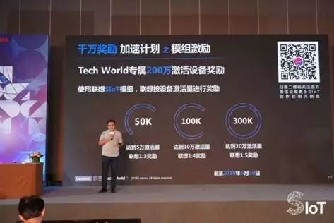 为了让更多的人享受到联想的智慧服务,与更多的合作伙伴共赢物联时代,联想集团中国区战略与业务拓展副总裁SIoT云平台及内容运营总经理阿木(阿不力克木·阿不力米提)特意为合作伙伴及开发者详解了上午刘军提到的千万奖励计划。截至2018年12月31日之前,所有在联想开发者平台网站注册并提交申请的企业用户,联想将赠送开发者联想IoT模组20片、联想开发套件一套,同时给予开发文档和技术支持;除了免费开发包计划外,联想还特意制定了前200万设备激活模组奖励计划,对于使用联想SIoT模组的合作伙伴,联想按照设备激活量进行奖励。