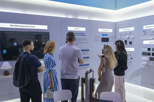 由RM MAX领衔,博联同步展出了适配海外市场的全屋智能产品矩阵。包括智慧屏、面板、灯具、遮阳、暖通、安防、传感器等等,通过高度协同的产品组合,博联为现场观众呈现了覆盖生活全场景的一体化智能升级路径。