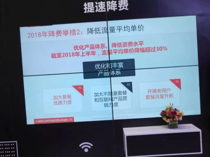 大幅降低宽带资费,家庭宽带单位带宽资费较2017年底下降30.3%。