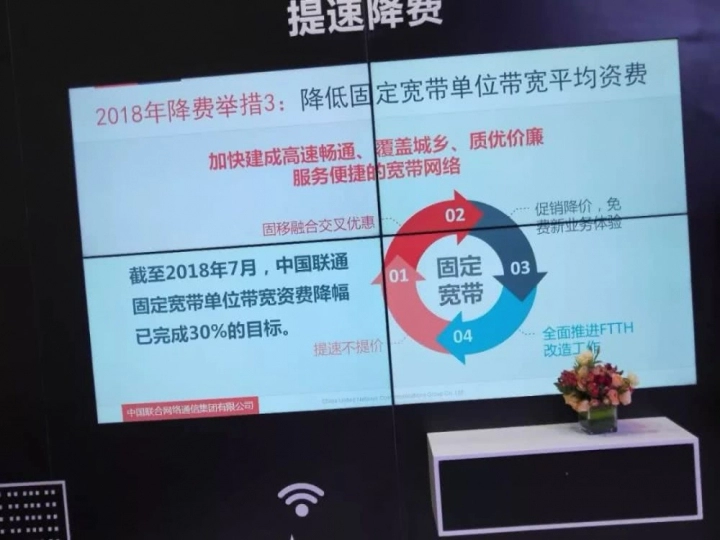 截至2018年7月,固定宽带单位带宽资费降幅已完成30%的目标。
