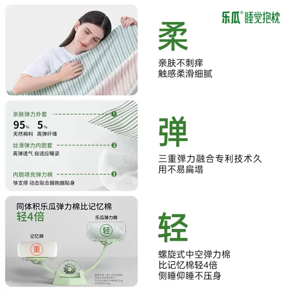 乐瓜睡觉抱枕(Sleeping Body Pillow)始终围绕 “调、养、护” 三大核心理念,针对性改善因错误睡姿引发的腰背酸痛、体态走形等问题,让睡眠成为 “修复身体” 的过程而非负担。