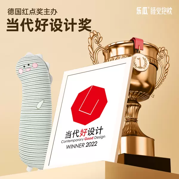 因此,乐瓜睡觉抱枕(Sleeping Body Pillow)在科学设计的基础上,特意融入“软萌人格化” 外观:憨态可掬的表情、修长可爱的条形造型,瞬间打破传统睡具的冰冷感,让抱枕更像一位 “深夜陪睡的贴心朋友”。这种 “功能硬核+外表治愈” 的情感化设计,也获得了国际认可 —— 产品成功斩获德国红点奖机构主办的 “当代好设计奖”。