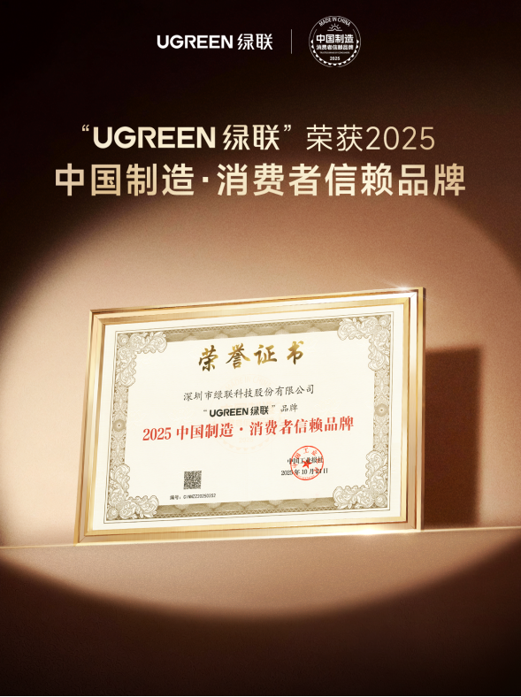 2025年10月,绿联科技凭借在产品品质、用户体验与创新研发上的持续投入,荣获“2025中国制造·消费者信赖品牌”。对于长期坚持以用户为中心、以品质为基石的绿联而言,这份荣誉是对长期实践“用心连接、信赖相伴”理念的最好注解。