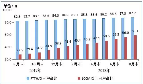 2017年8月末-2018年8月末光纤接入(FTTH/O)和