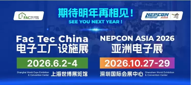 在此,感谢今年参与各论坛活动的演讲嘉宾,感谢每一位展商的辛勤努力以及观众的信任与支持,未来我们继续共探电子制造业的精彩未来!下一站2026年6月2-4日,Fac Tec China 2026见。