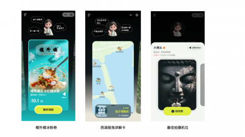 当气温升高到38℃时,它会推送“楼外楼冰粉券”;当游客乘船游西湖,它自动启动“西湖摇曳讲解卡”,同步语音导览;当检测到游客靠近热门拍照点时,会提示“最佳拍摄机位”,并提供一键拍同款的功能,随手一拍就能拍出大片。这种感知式推荐让AI首次具备了“实时理解旅程”的能力——它不是静态的向导,而是一个懂时机的运营者。